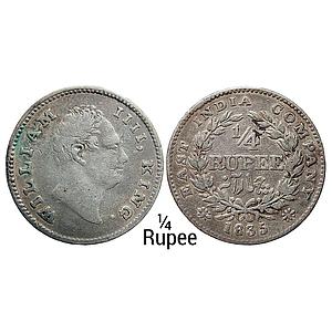 EIC William IV 1835 AD Dug out F incuse Wreath with 19 Berries 10L+9R large date numerals no dot after date Calcutta Mint Silver 1/4 Rupee
