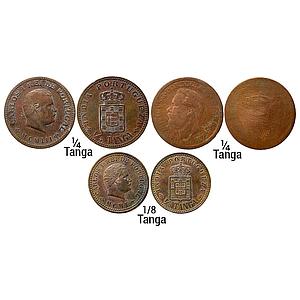 Indo Portuguese Carlos I Luiz I (Ludwig) Set of 3 Coins Copper 1/4 Tanga 1/4 Tanga 1/8 Tanga