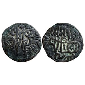 Hindu Medieval Chauhans of Ajmer Sambhar Somalekha Somala Devi Queen of Ajaya Deva Copper Unit