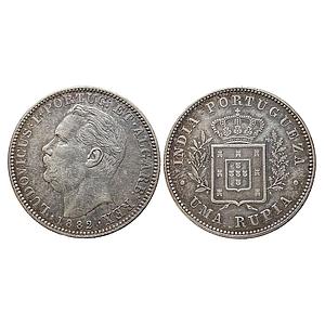 Indo Portuguese Goa Luiz I Ludwig 1882 AD Silver (.917) Uma Rupia/Rupee