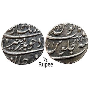 Mughal Aurangzeb Surat Mint Silver 1/2 Rupee