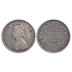British India Victoria Queen 1884 Bombay Mint Silver 2 Annas