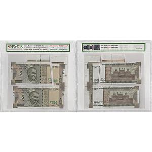 India Reserve Bank Of India 500 Rupees Sheet Fold Cutting Error Sheet Error With 2 Notes