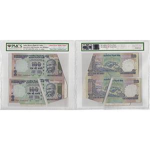 India Reserve Bank Of India 100 Rupees Sheet Error With 2 Notes Sheet Fold Cutting Error