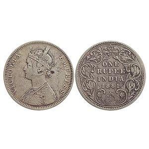 British India, Victoria Empress, 1881 AD, Bombay Mint, A3 / IV / dot, Silver Rupee