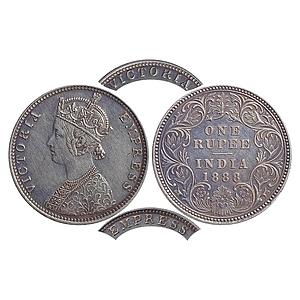 British India, Victoria Queen, 1888 AD, C2 / I, B raised, thin and crude legends, Silver Rupee