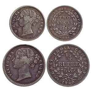 EIC, Victoria Queen, Mule Set of 2 coins, Silver "1/4 Rupee" & "2 Annas"