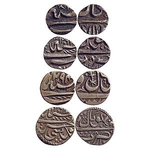 IPS, Bhopal State, Shah Jahan Begum, Set of 4 coins, Silver Rupee, "1/2, 1/4 & 1/8"