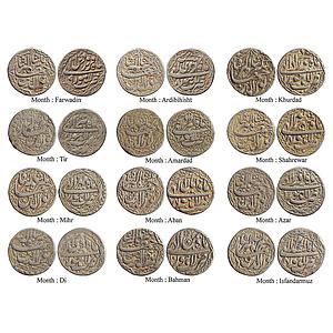 Mughal, Jahangir, Lahore Mint, Full 12 Ilahi Months set, Silver Rupee