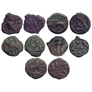 Ancient, Mauryan Period, Central India, Set of 5 coins, Cast Copper