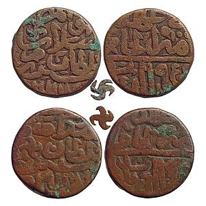 Delhi Sultan, Islam Shah Suri, Gwalior Mint, clockwise swastik & anticlockwise swastik, Set of 2 Coins, Copper Paisa