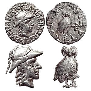 Ancient, Indo-Greeks, Menander I, Owl, Silver Dramma