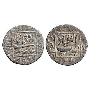 Mughal Aurangzeb Dar ul-Khilafat Shahjahanabad Mint AH 1170 RY Ahd/2 Regnal year 2 engraved over Ahd Silver Rupee