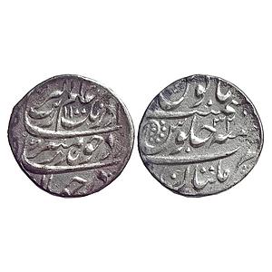 Mughal Aurangzeb Multan Mint Silver Rupee